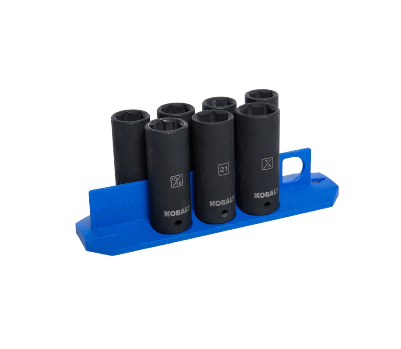 - Includes impact wrench, 7 deep-well sockets (11/16-in, 3/4-in, 13/16-in, 7/8-in, 17mm, 19mm, 21mm) and carrying case