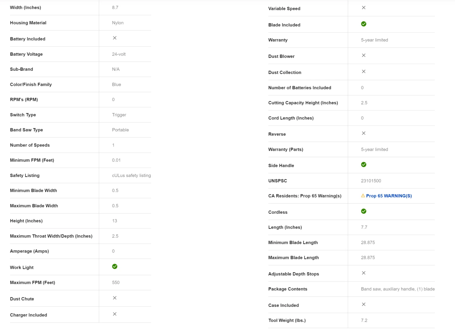 Kobalt KBDS 124B-03 24-Volt 2.5-in Portable Band Saw