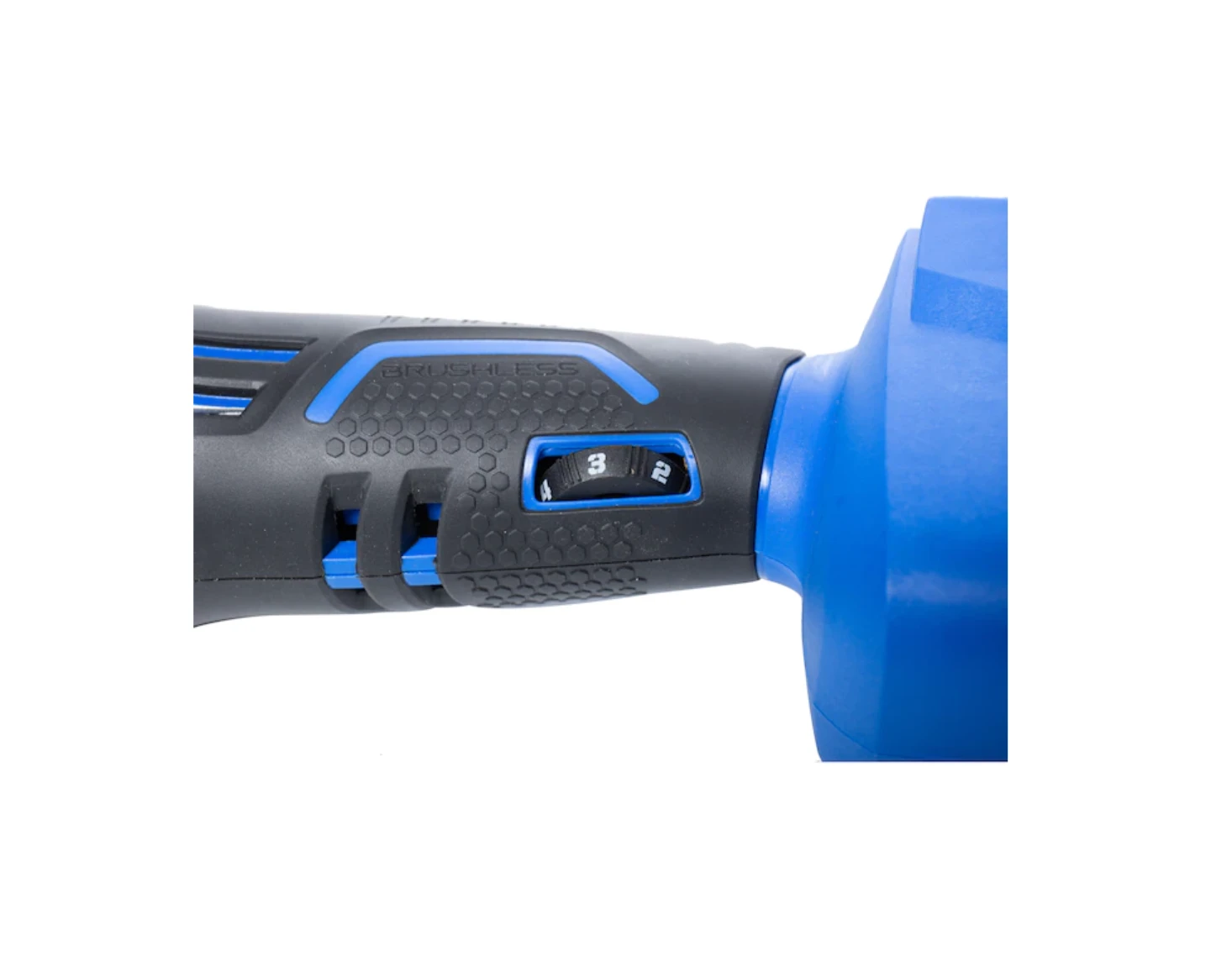 It’s brushless motor provides longer run time, but also produces 11,000-20,000-OPM. Kobalt KMT 124B-03