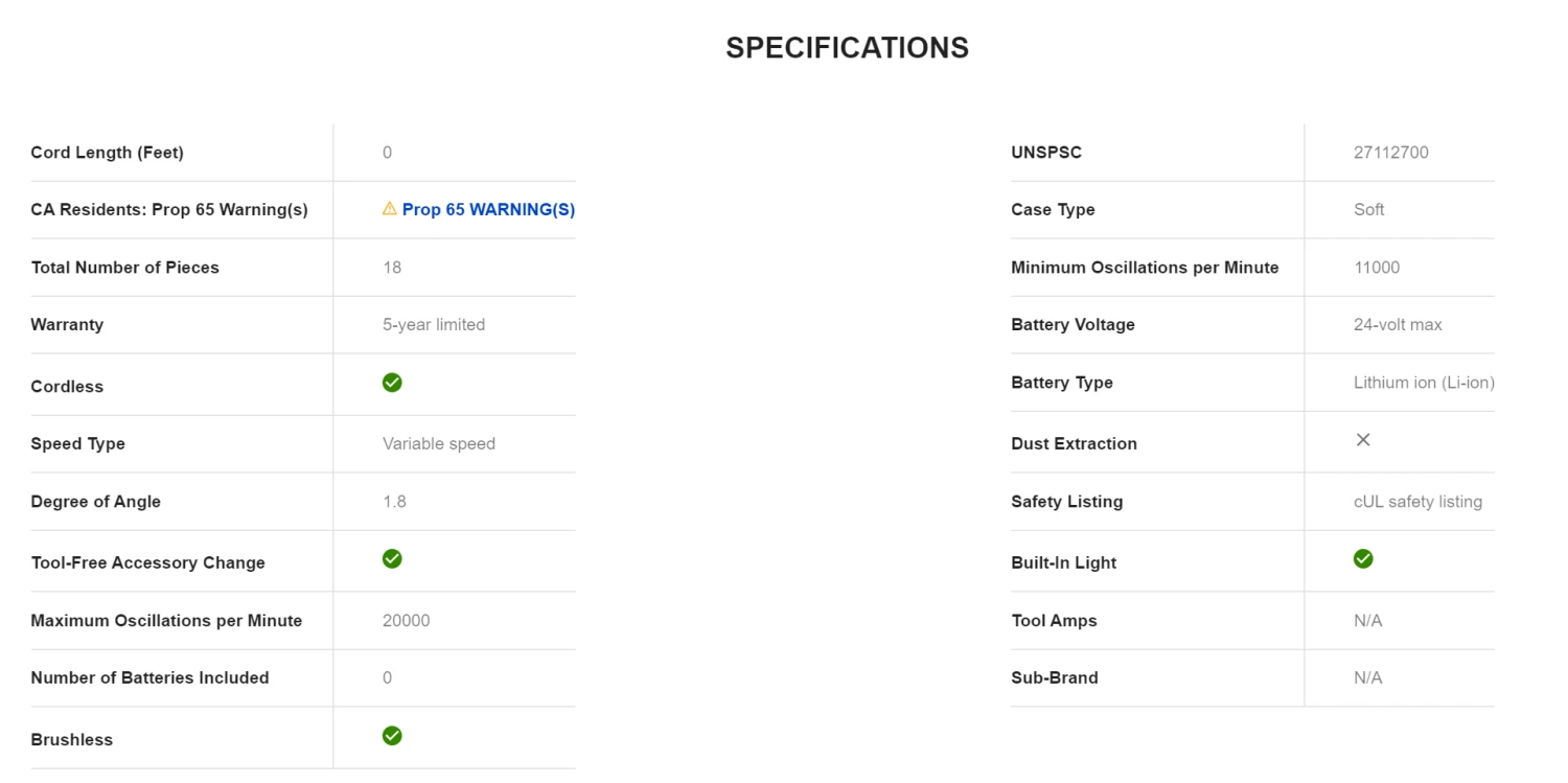 - 1.8 Degrees of oscillation (left and right) allows you to tackle larger tasks faster