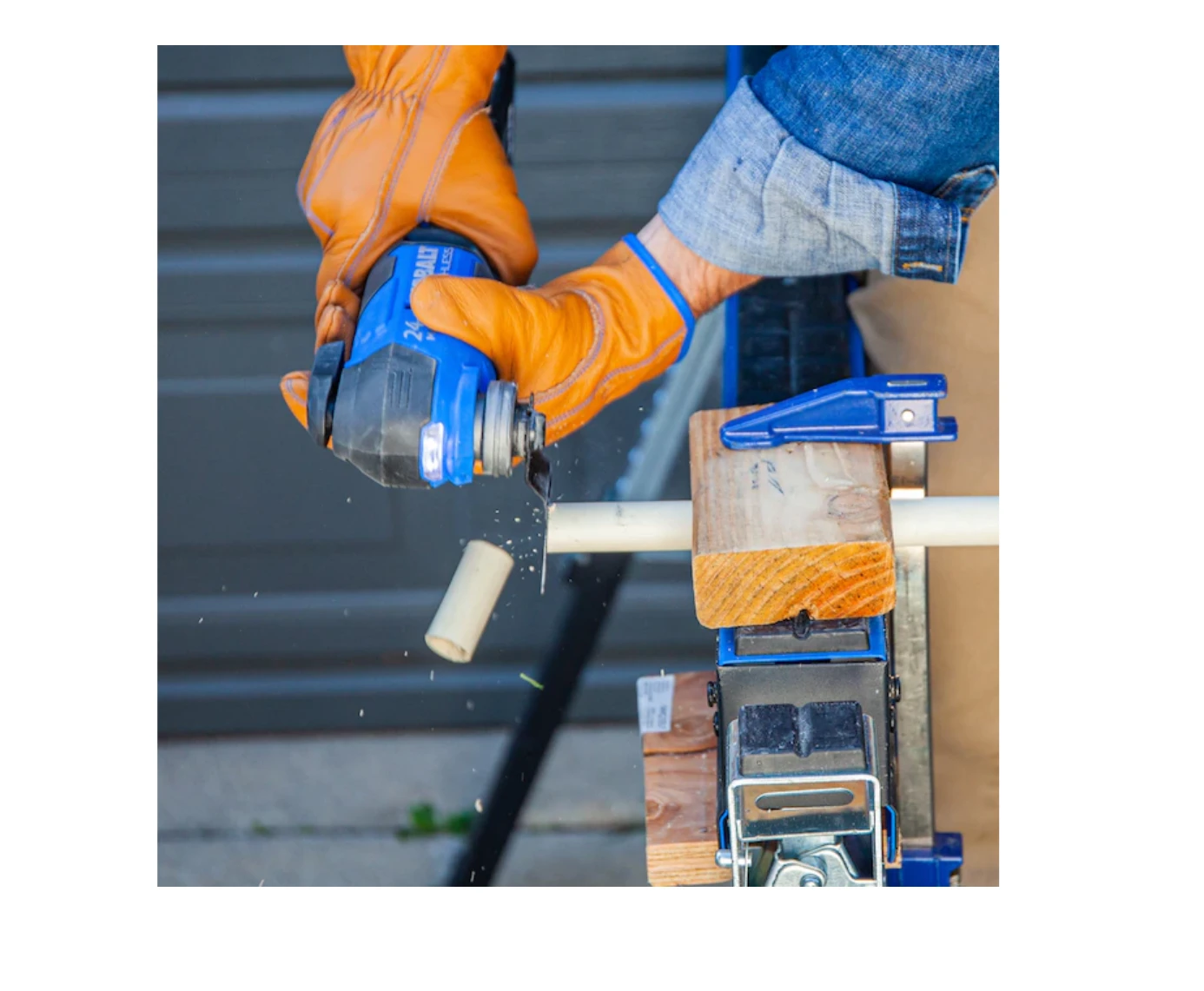 Whether you need a tool for sanding or cutting, the Kobalt 24v Multi-Tool features new innovative technology that highly reduces the vibration and noise for the ultimate user experience. The variable speed trigger offers ultimate control to start cuts at a low speed and easily accelerate for fast cutting. The Lock On feature eliminates the need to have a finger on the trigger in tight spaces or hard to reach areas. The powerful and efficient brushless motor delivers the strength to cut through the hardest materials with up to 18,000 oscillations per minute while providing the runtime to get the job complete. The tool-free blade changes allows the user to quickly change blades to complete the next task on their to-do list. The center pin can be removed to easily and quickly adapt to Starlock blades. The kit includes (3) plunge cut blades, (1) scraper blade, (1) carbide grout removal blade, (1) flush-cut blade, (1) sanding pad along with (9) 60/120/180 grit sand paper, and a soft bag to carry it all in! It is compatible with all Kobalt 24-volt batteries and chargers , and also comes with a 5-year tool limited warranty and 3 year battery and charger limited warranty.