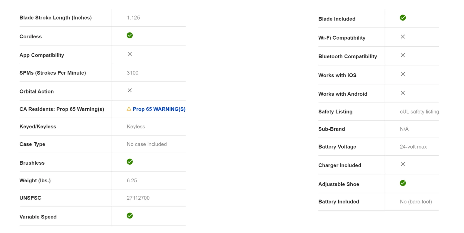 - 1-1/8-in blade stroke and 0-3,100-SPM allow you to cut through materials quickly